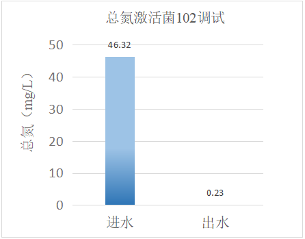 我司技术人员通过现场评估,发现生化系统总氮去除效率有限,生化温度30℃,系统内有效生物量不足,导致系统抗冲击能力差,出水总氮难以达标。通过技术人员现场投加复合碳源101和激活菌102,再配合现场生化系统运行条件控制、优化,达到如下效果: